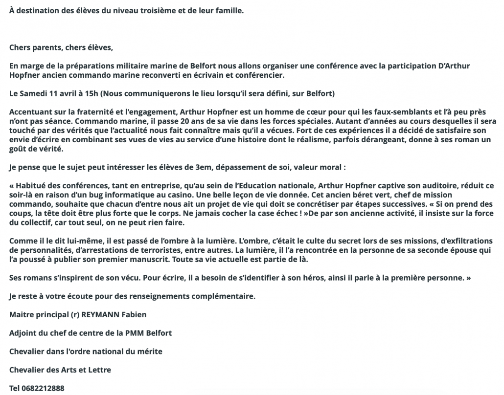 Conférence PMM (Présentation Militaire Marine) 16 mars 2026/0 Commentaires/dans Administration, Divers, Famille, Infos, Orientation /par Michael Paoli Partager : Partager sur X(ouvre dans une nouvelle fenêtre) X Partager sur Facebook(ouvre dans une nouvelle fenêtre) Facebook Plus Envoyer un lien par e-mail à un ami(ouvre dans une nouvelle fenêtre) E-mail https://college-vauban.fr/wp-content/uploads/2026/03/2025_mbst_047_s_001_011.jpg 1573 2362 Michael Paoli https://college-vauban.fr/wp-content/uploads/2016/08/logonewvauban-1-845x488-1-300x173.png Michael Paoli2026-03-16 08:51:162026-03-16 08:51:20Conférence PMM (Présentation Militaire Marine)