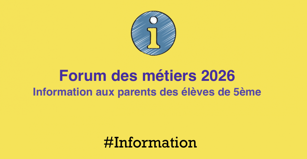 Forum des métiers 2026 – Information aux parents des élèves de 5èmes –