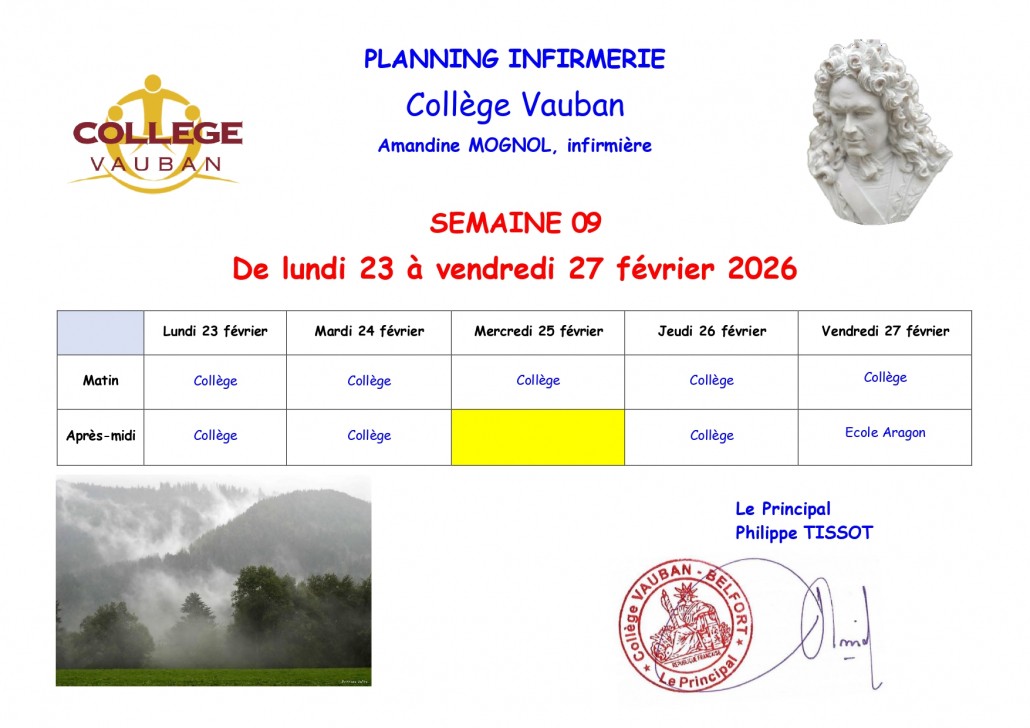L’infirmière est disponible dans l’établissement selon le planning ci dessous. Vous pouvez toutefois la contacter par mail ou par téléphone. Ligne directe : indisponible pour le moment Adresse mail : indisponible pour le moment Partager : Partager sur X(ouvre dans une nouvelle fenêtre) X Partager sur Facebook(ouvre dans une nouvelle fenêtre) Facebook Plus Envoyer un lien par e-mail à un ami(ouvre dans une nouvelle fenêtre) E-mail